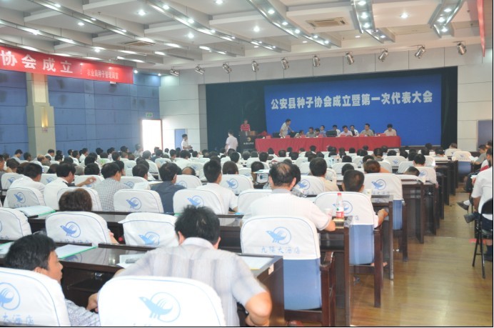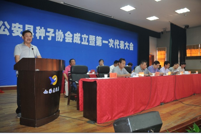 湖北省公安县种子协会成立暨第一次代表大会成功召开 日期:2012-7-5 人气指数:600 2012年7月4日,湖北省公安县种子协会暨第一次代表大会在公安县九阳大酒店隆重召开,会议由湖北省公安县政府副县长李向东同志主持。参会代表达310多人,其中会员代表281人。县委副书记陈立贵同志出席会议并发表了讲话。我司董事长兼总经理谢光平同志当选为湖北省公安县种子协会首届会长,并作了会长讲话。